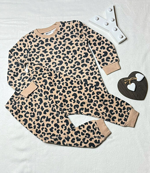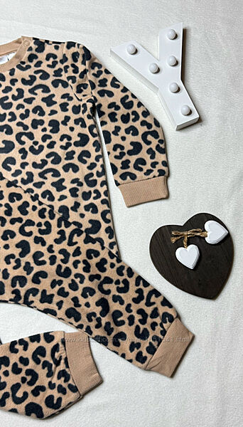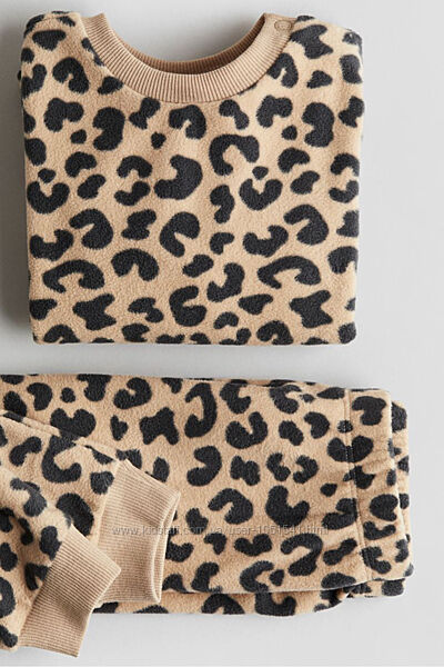 Зручна піжама з м´якого флісу від H&M на малюків , що складається з кофти та штанів. Светр має застібку на одному плечі (не в розмірі 92-104) і ребристу окантовку навколо горловини та внизу рукавів, штани на резинці .Принт-леопард .РICT 74 80 ( кофта спина 36 ПОГ -28 рукав-31 см , штани довжина 47 шаг-26 талія 23 см ) 86( кофта спина 38 ПОГ -29 рукав-32 см , штани довжина 50 шаг-29 талія 23.5 см ) 92( кофта спина 39 ПОГ -30 рукав-34 см , штани довжина 54 шаг-33 талія 24 см ) 98( кофта спина 41 ПОГ -32 рукав-35 см , штани довжина 60 шаг-36 талія 25.5 см ) 104( кофта спина 42 ПОГ -33 рукав-36 см , штани довжина 64 шаг-38 талія 26 см )