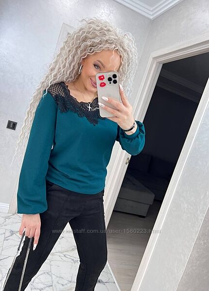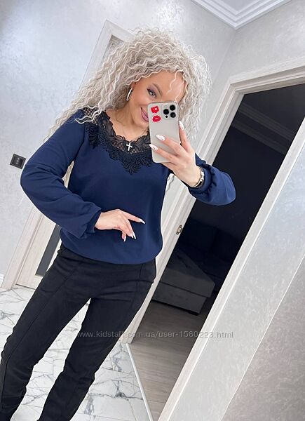 Код№ 49 кофта з мереживомДоступні кольори: чорний, смарагд, синій, темно-синій