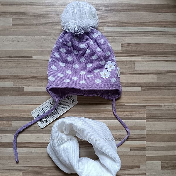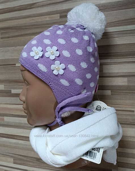 Шапка для девочки на флисе завязками.ОГ46-48см