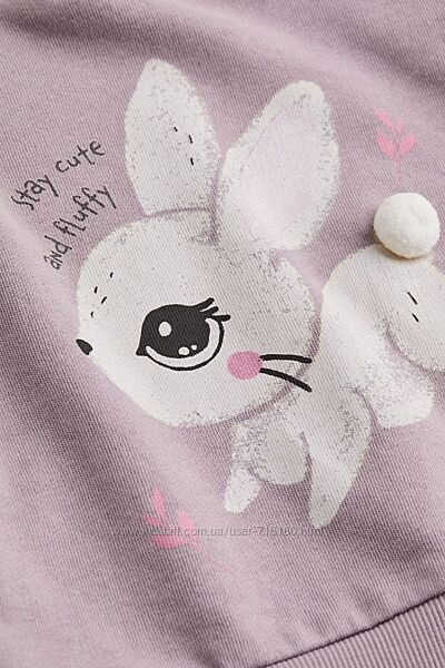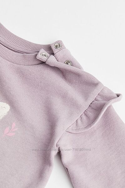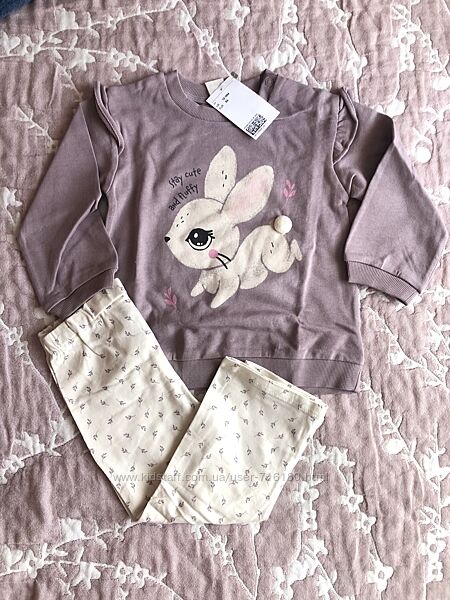 Комплект із бавовняного трикотажу H&M з принтом зайчика.В комплекті - тоненькі бавовняні штанці та бавовняний світшот (тринитка).