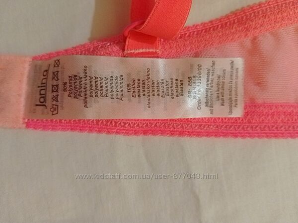 Бюстгальтер бренду Janina розмір 85B.Бюстгальтер з ефектом Push-up, оздоблення тоненьким мереживом; на кісточках, має регульовані, незнімні бретельки; застібка на 2 гачки ззаду.