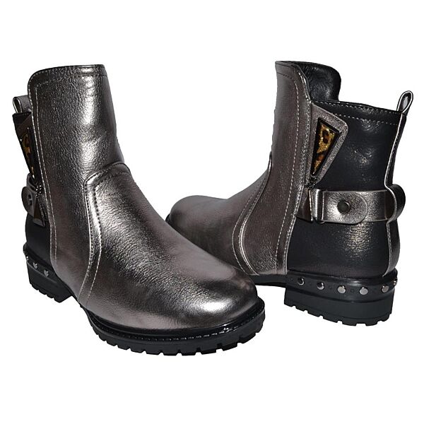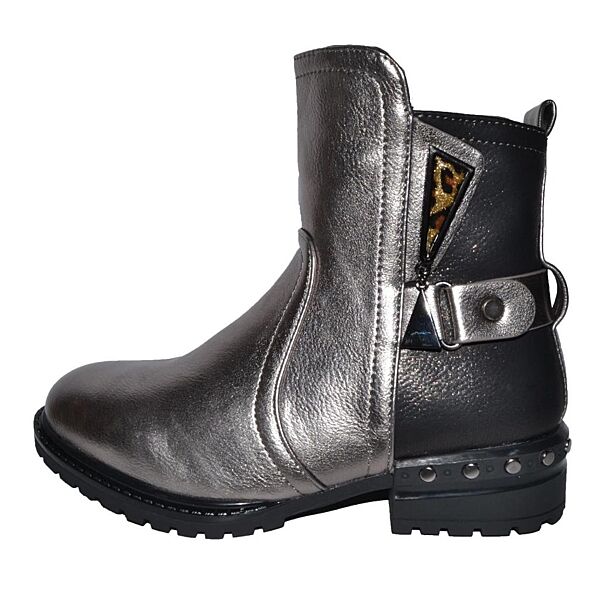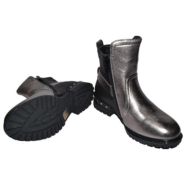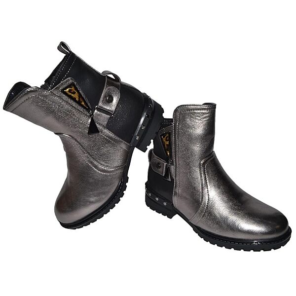 Верх – кожзаменитель, внутри - демисезонный утеплитель.Цвет - комбинированный (серебристо-серый, черный с перламутром).