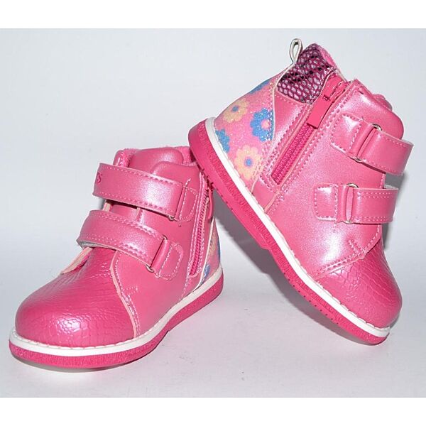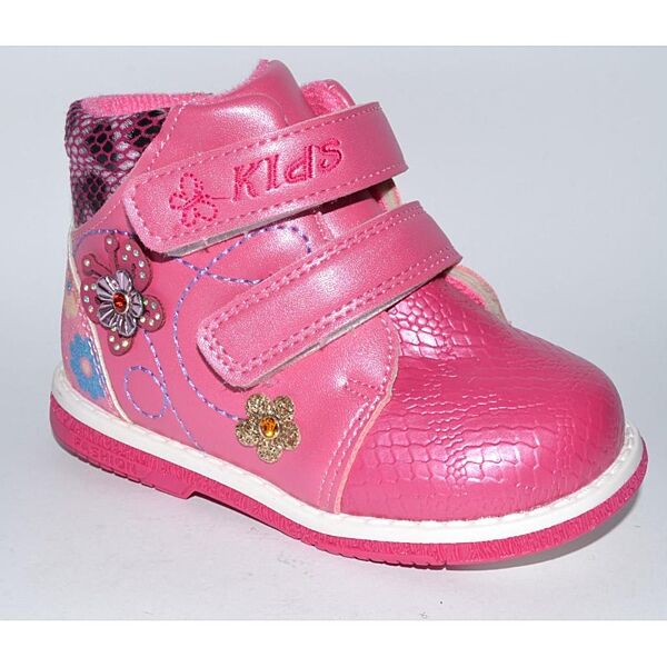 Верх – комбинированные материалы (кожзаменитель, текстиль), внутри – демисезонный утеплитель.Основной цвет – малиновый.