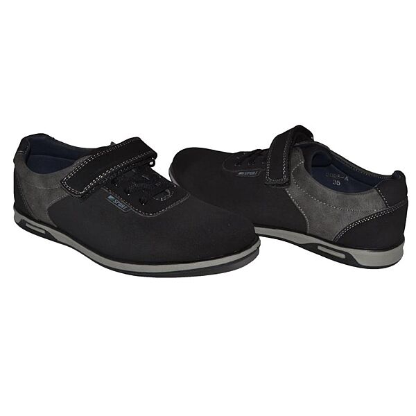 Материал – кожзаменитель (под нубук), стелька с супинатором.Основной цвет – черный. Дополнительный цвет - темно-серый.