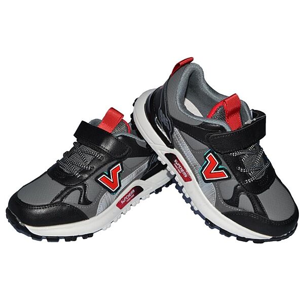 Верх – кожзаменитель, внутри - текстиль, кожаная стелька с супинатором.Основные цвета – черный, серый. Дополнительные цвета - белый, красный.