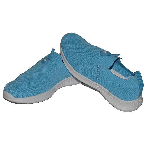 Верх – текстиль со стрейчем. «Дышащие» стельки с амортизационной подушечкой под пяткой, смягчающие нагрузку во время ходьбы.Основной цвет – голубой. Подошва - белая.