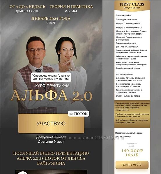 Подробное описание: Денис Baiguzhin, Елена Silka Альфа 2.0. Тариф Business class
