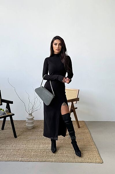 Подробное описание: 44-46 Базова сукня з вирізом під пальчик двостороння ангора рубчик