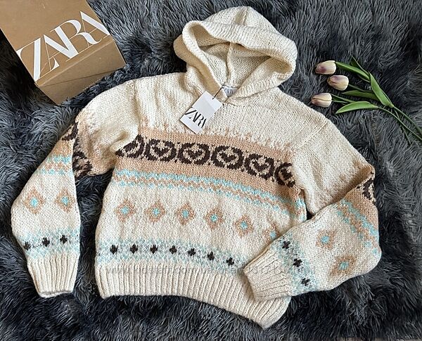 Подробное описание: свитер Zara вязаний светр Zara з капюшоном укорочений светр на дівчинку