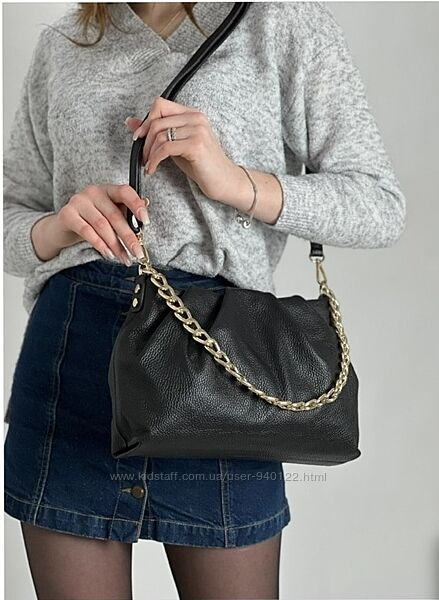 Мяка сумка жіноча середнього розміру в натуральній шкірі на плече