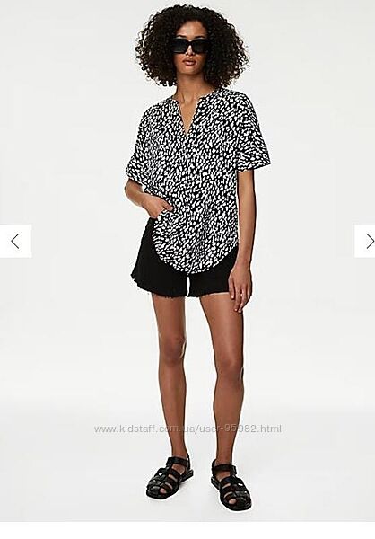 Гарна, стильна, актуальна блуза вільного крою з анімал принтом зі 100% льону від Marks & Spencer. Її оцінять і прихильники просто ллянихречей, і стилю бохо, і оверсайз. Якість тут прекрасна. Лінія плеча
