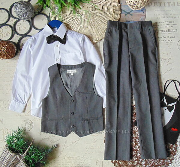 Суперовий класичний брючний костюм з додаванням вовни John Rocha на 7 років, зріст 122 см, до складу входить жилетка,штани, сорочка, метелик