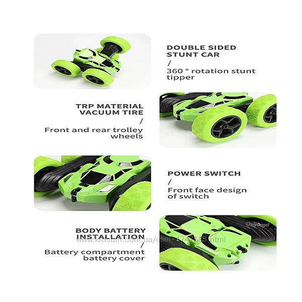 Подробное описание: Машинка-перевертень на радіокеруванні, трюковий автомобіль всюдихід Зелена