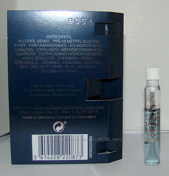Концентрація: парф. вода. Сплеш (не спрей).Об`єм: із 1,5 мл реальний рівень див.фото.