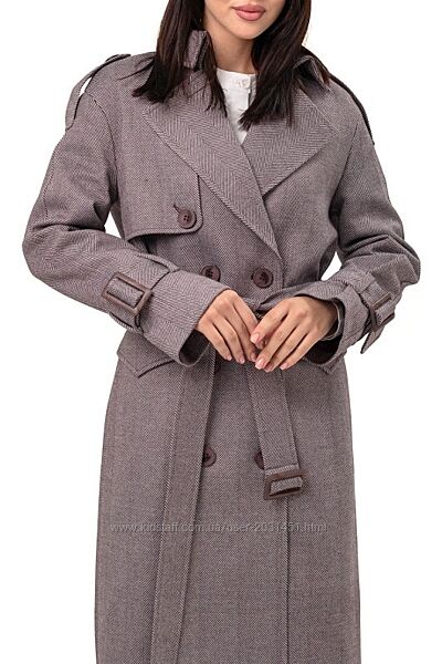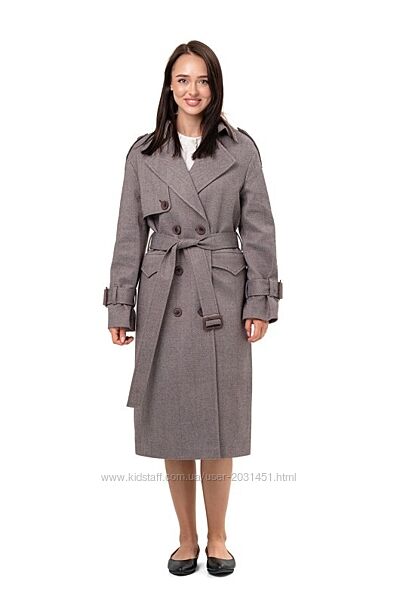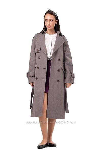Подробное описание: Пальто женское шерстяное демисезонное в стиле тренч, двубортное, марсала