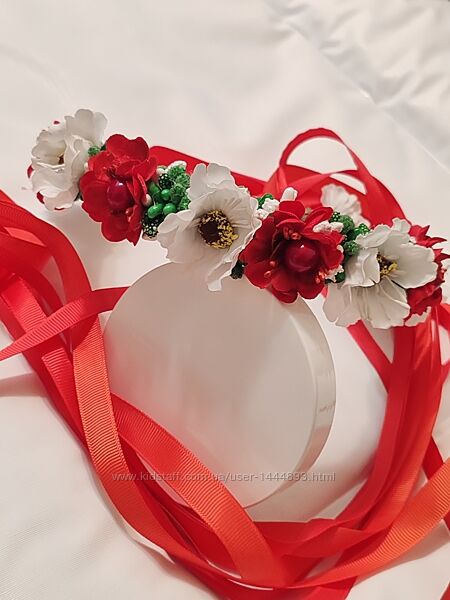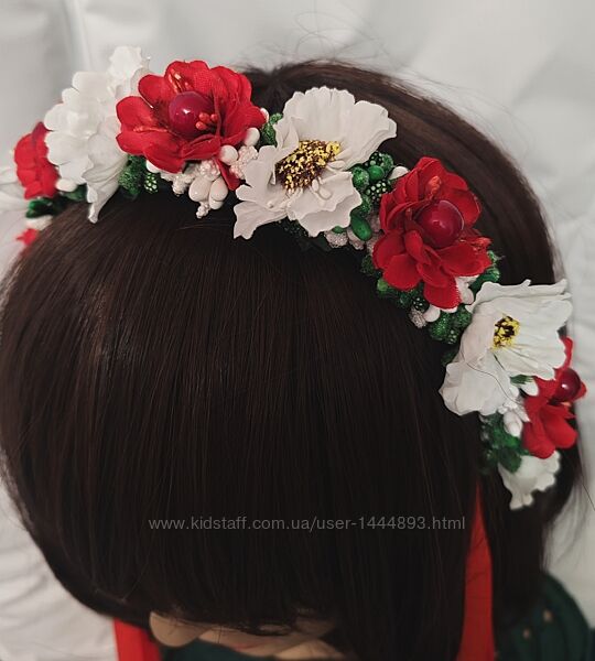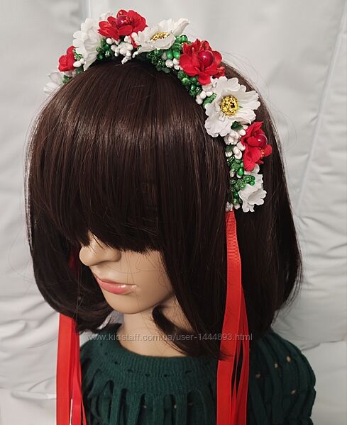 Подробное описание: Віночок на обручі з червоними та білими квітами