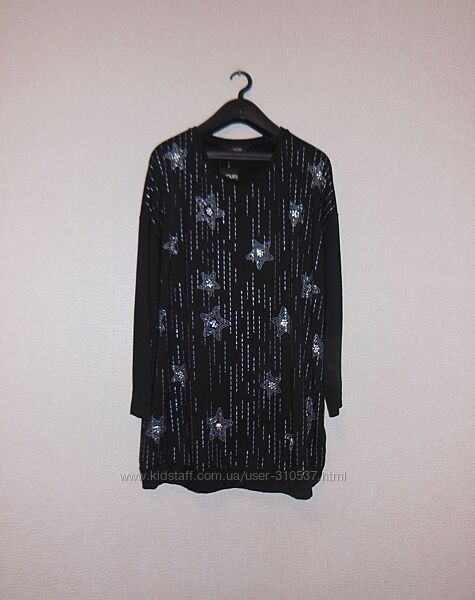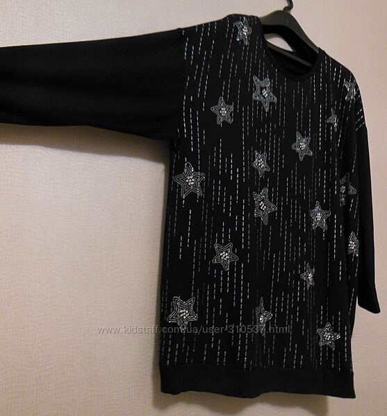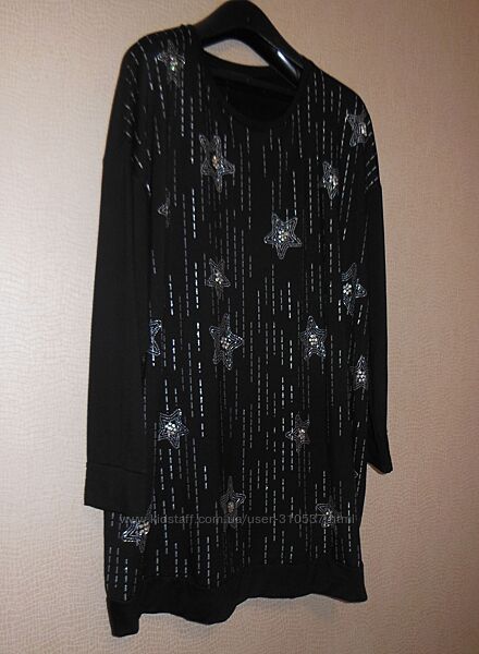 Стильна тепла зимова туніка/подовжений світшот з начосом британського бренду Yours – стильна, надзвичайно якісна і практична річ!!!Спереду туніка усипана міцно припаяними (не приклеєними!) дрібними стразами чорного кольору (переливаються на світлі), а от кріплення великих камінчиків у цапах – закльопки (пробиті наскрізь і міцно прикріплені)!