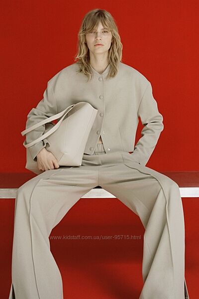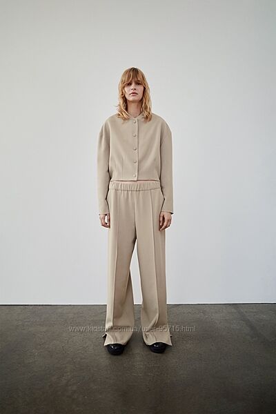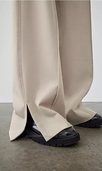 Штани піжамного крою Zara з суміші віскози. Високий еластичний пояс. Бічні кишені. Передній шов. Прямі штанини з бічними розрізами на подолі.