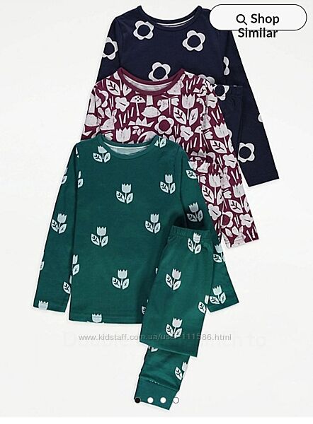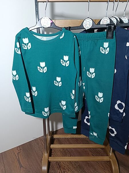 Піжамки для дівчат George, трикотажні 100% котон, штанці знизу на манжетах, гарної якості, не втрачають колір і не деформуються після прання.Розмір в наявності