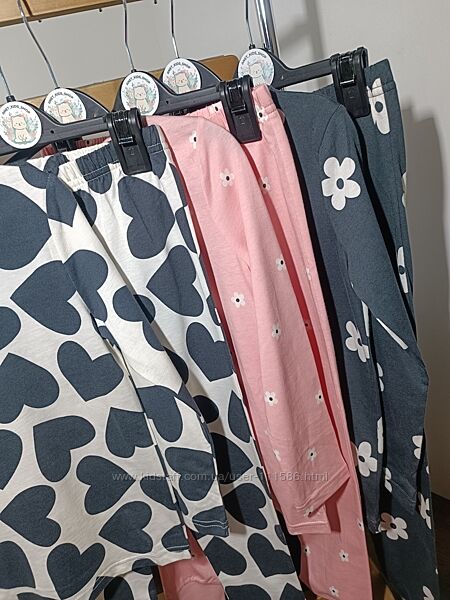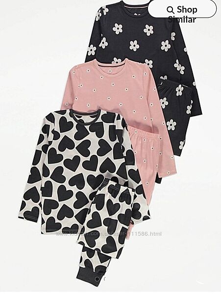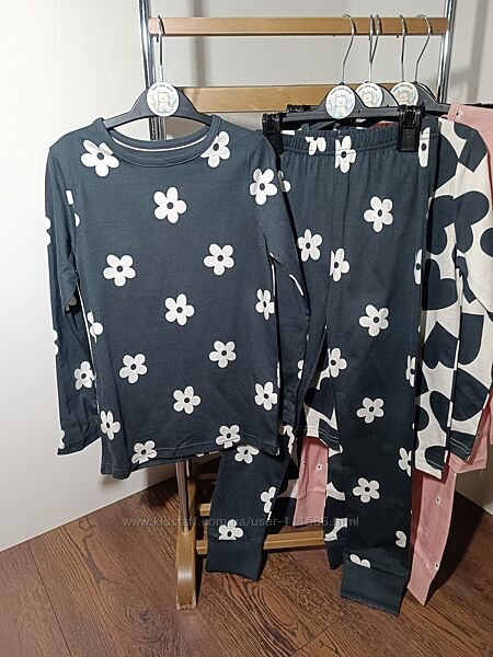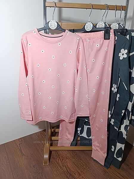 Піжамки для дівчат George, трикотажні 100% котон, штанці знизу на манжетах, гарної якості, не втрачають колір і не деформуються після прання.Розмір в наявності
