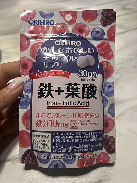 Залізо та Фолієва кислота, смак ягід (Iron & Folic acid Orihiro) 60 г (120 табл. / 500 мг)Orihiro Жувальні вітаміни залізо та фолієва кислота Iron + Folic Acid 120 шт на 30 днів
