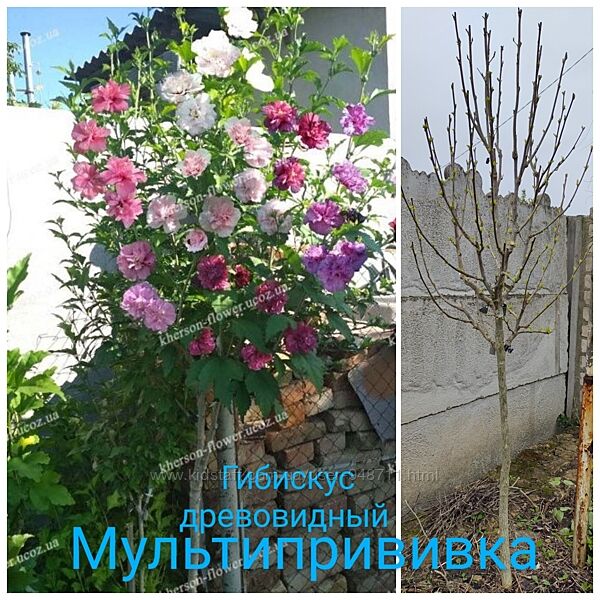 А также трехцветные гибискусы переплетенные стволами из махровых и не махровых сортов.