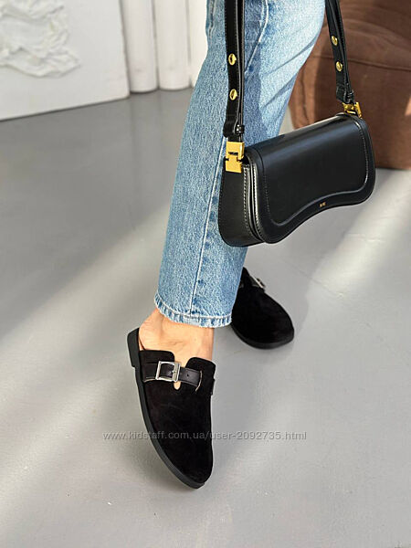 Сабо жіночі замшеві чорного лате кольору Артикул 5503 новинка