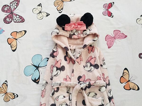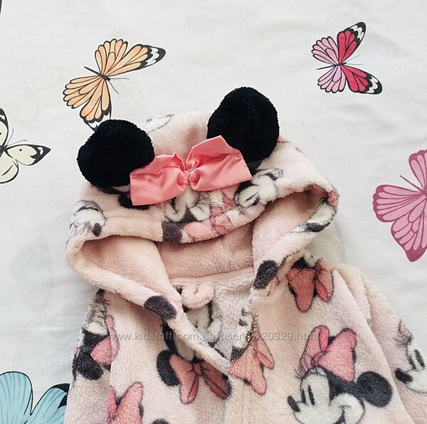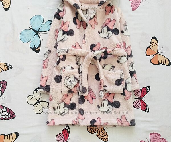 2-3 рок., Disney. Next флісовий, махровий, пухнастий халат з капюшоном. Стан: нового, зав´язується на талії пояском. є Кишені.Міні довжина 52; рукав від вороту 39