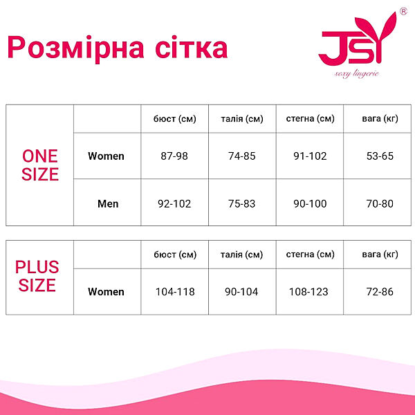 Сукня підходить для жінок, які хочуть додати гостроти та романтики у своє інтимне життя. Вона ідеально підійде для вечірки, романтичної вечері або для створення яскравого образу в спальні. Універсальний розмір One Size підходить для жінок з об´ємом грудей від 87 до 98 см, об´ємом талії від 74 до 85 см і об´ємом стегон від 91 до 102 см.
