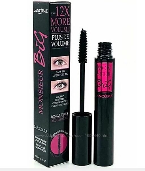 Тушь для ресниц Lancôme Monsieur Big Volumizing Mascara for up to 12x More Volume & 24H Wear - False Lash Effect - Black - Тушь для ресниц Lancôme Monsieur Big Volumizing Mascara для увеличения объема до 12 раз и стойкости в 24 часа - Эффект накладных ресниц - Черный 01 New Black - 0.33 oz/ 10 mLCтойкая тушь Monsieur Big Mascara от бренда Lancome с интенсивно черным пигментом вмиг превратит ваши ресницы в объект захвата. Средство в одно касание способно придать ресницам объем и удивительный изгиб. Кроме того, тушь отлично удлиняет волоски, безупречно поделяя и окрашивая каждую ресничку.⠀Благодаря уникальной пышной щеточке тушь максимально раскрывает взгляд, делает его более глубоким и пронзительным. Она обеспечивает стойкое покрытие ресниц, которое не осыпается при нанесении и не перебивается в течение всего дня.
