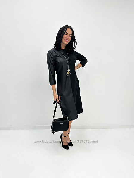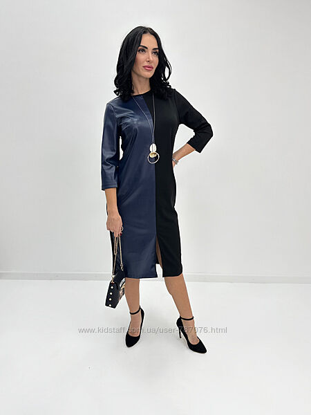 Подробное описание: Сукня міді з екошкірою Martina , 42-56 р. , 3 кол.