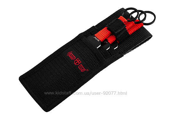 Сталь 420 має і високу корозійну стійкість, тобто зовсім не боїться ні вологи, ні бруду. Набір метальних ножів надійно фіксується в чохлі з кордури - міцної нейлонової тканини, що застібається на липучку.