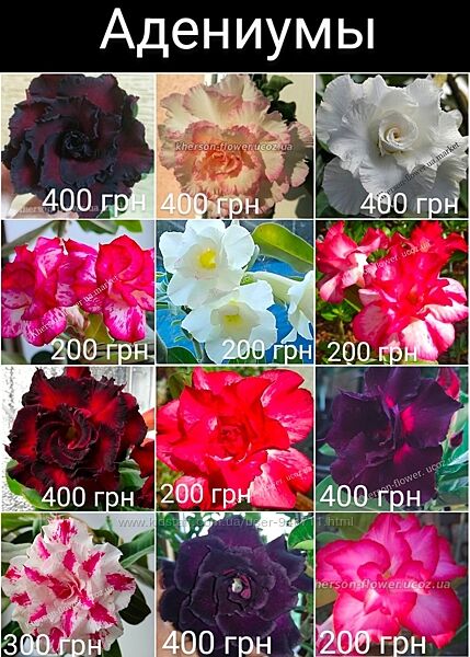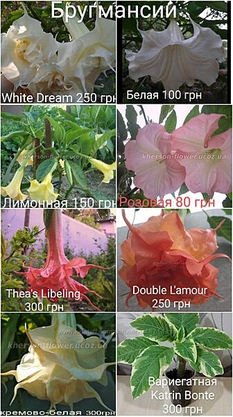 Также есть целая коллекция махровых привитых адениумов по цене от 200 грн и 8 сортов бругмансии от 80 грн