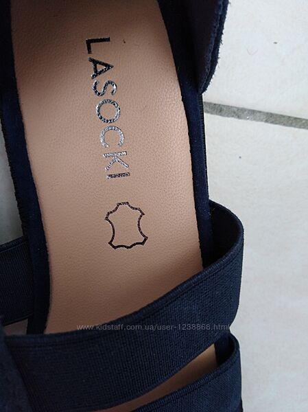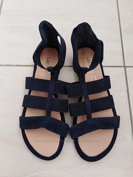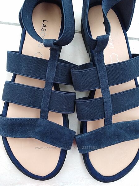 Босоножки Lasocki.Изготовлены из натуральной замши синего цвета,эластичной ленты, стелька кожаная.Размер 38, стелька 24см.