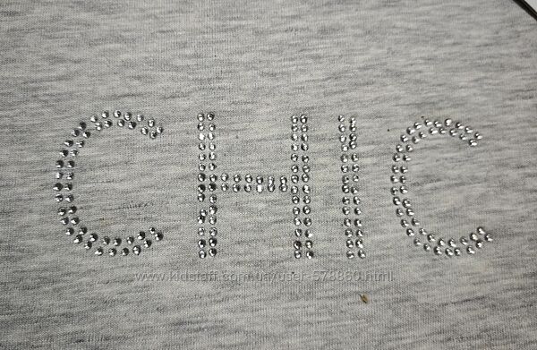 Бежево-сірий реглан з оборками від OVS у розмірі 13-14 років (с19).Дуже гарно виглядає з оборками та написом зі страз.