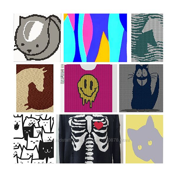 3. В МК будут схемы проверенных принтов (от хулиганско-молодежных до романтических) на разное количество петель и рядов.