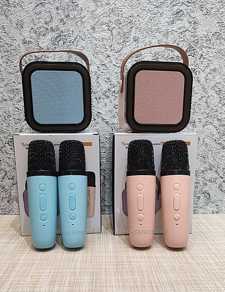 Подробное описание: Портативна дитяча колонка з мікрофонами К-12. Караоке мікрофон дитячий