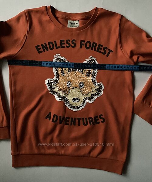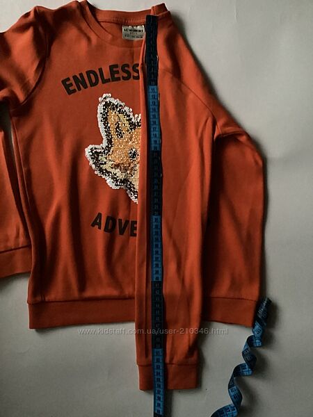 Продам після своєї дитини лонгслів-кофтинку , в ідеальному стані, бавовна 100%, заміри на фото. Мордочка лисички з паєток, можна самостійно міняти її вираз .
