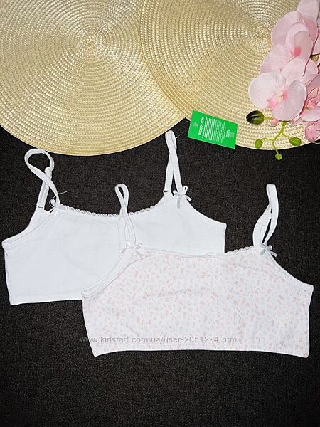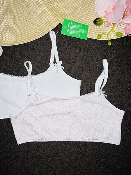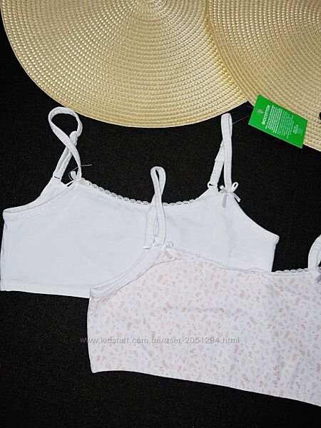 Топ бавовняний на тонких бретельках білого кольору і білий в квітковий при