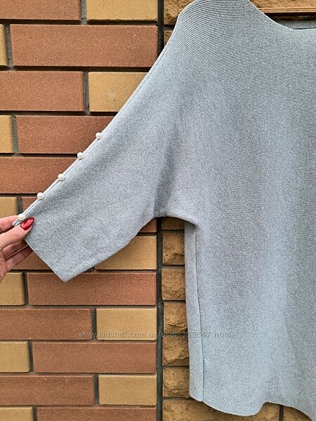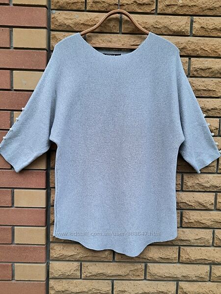 Стильный женственный удлинённый джемпер от Kinga. В составе пряжи шерсть с люрексовой нитью. Рукав фасона "летучая мышь", 3/4, декор бусинами. Качество на высоте!✅ Состав: 40% шерсть, 35% вискоза, 20% спандекс, 5% кашемир.