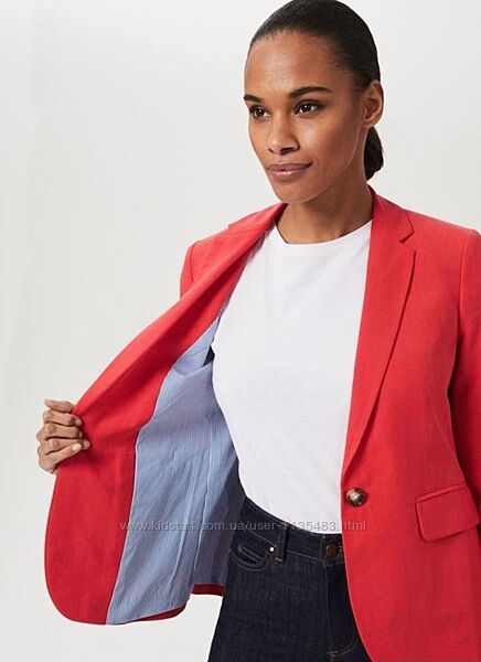 Стильний піджак преміум бренду Hobbs (Англія ) р. вказаний 16/2XL/44 , але підійде на р. 12/40/L- 14/XL/42 (маломірить).Ідеальне поєднання елегантного та повсякденного стилю Trinity – це універсальний піджак, який потрібна вашому гардеробу. Бездоганно скроєний по фігурі з однобортним силуетом, він виглядає сучасно завдяки застібці на один ґудзик зі штучного рогу. Смугаста підкладка додає грайливості. Виготовлений з шовку та льону для комфорту та повітропроникності.