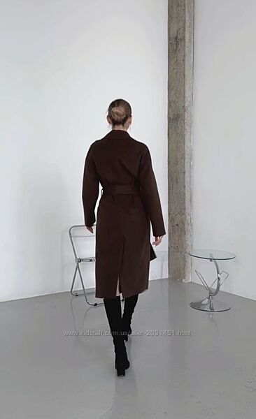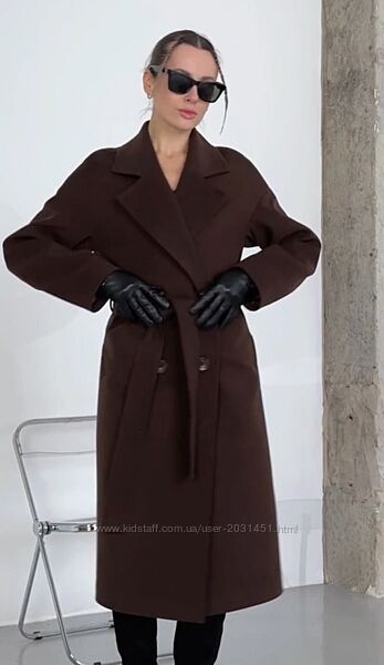 Подробное описание: Пальто женское длинное демисезонное двубортное оверсайз, шерстяное, шоколад