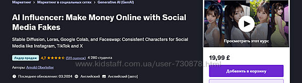 Арнольд Оберлейтер [Udemy] AI Influencer: Зарабатывайте денежные средства в Интернете с помощью фейков в социальных сетях (2024)Язык: английский + русский машинный перевод GPT + русские аудиодорожки машинный перевод AI + для удобства воспроизведения добавлена отдельная папка с сшитыми видео файлами h.265 (русская аудиодорожка + видеофайл)
