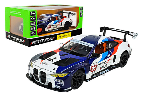 Машина металева Автопром 68282A(B) 1:24"BMW M4 GT3" blue color, світло, звук, відкр.двері, капот, багажник. БМВРозмір упаковки:24,5*12*10см