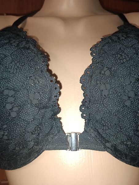 Подробное описание: Комфортный черный бюстгальтер, застежка впереди, хороштй пуш-ап, размер 38D