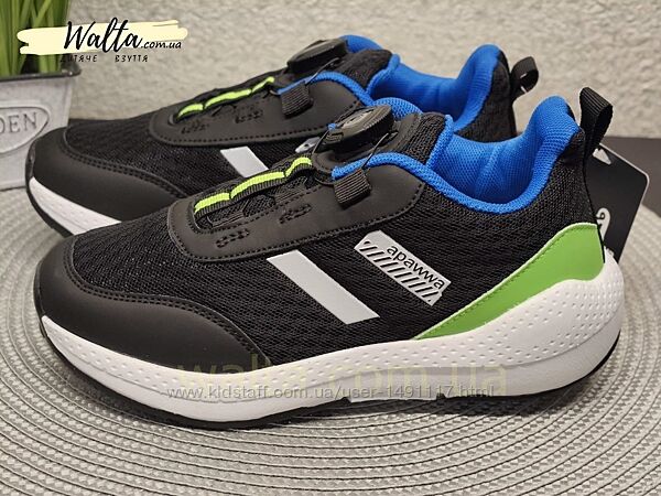 Стильні зручні кросівки від фірми Apawwa (Румунія), легенькі. На шнурівці+затяжка. Підошва частково гнеться. Легенькі і зручні, можна на фізкультуру. Затяжка активується прокручування за часовою стрілкою. Щоб послабити затяжку потрібно відтягнути круглу кнопку вверх і прокрутить проти часової стрілки.