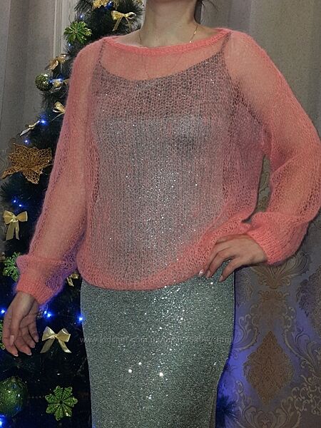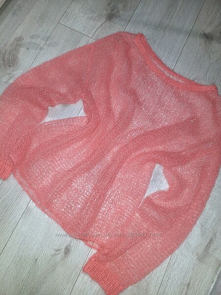 Джемпер паутинка, лёгкий и невесомый, но очень тёплый. Нежный коралловый цвет.✅Пряжа мохер.