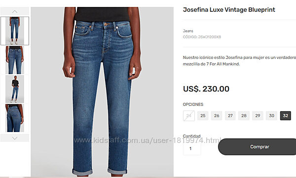 Джинси 7 For All Mankind Josefina Luxvintage Blueprint JSWJ1200XB оригіналОРИГІНАЛ! Повна вартість 230 дол. Неймовірно якість від фірми 7 For All Mankind, всі джинси цієї марки мають суперову посадку і лягають як друга шкіра, ніде не тиснуть. Розмір 23, але йдуть на 24, можливо навіть 25 (не знаю, на мене великі, в мене 23 розмір)