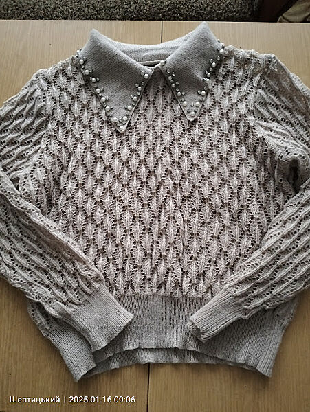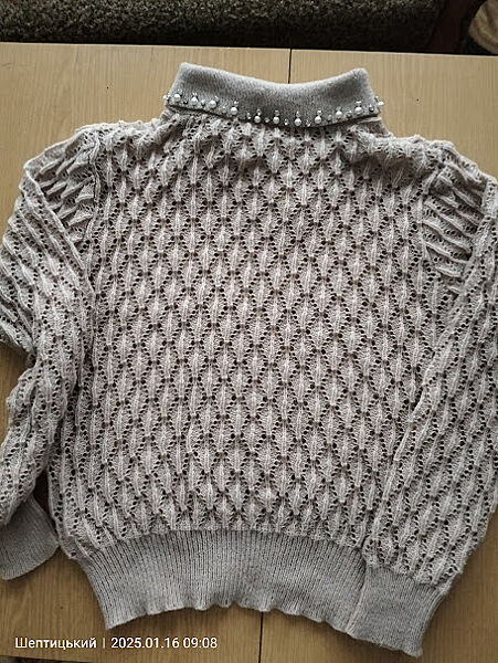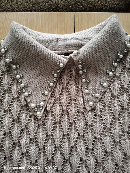 Нова кофтинка з камінцями та бусинами на комірці,дуже елегантна ,мяка і приємна до тіла.48розмір- ПОГ-53см(у вільному стані),1/2низ-34см,ДР-60см,плече-11см,ШСп.-40см,довжина виробу-57смДругие объявления продавца