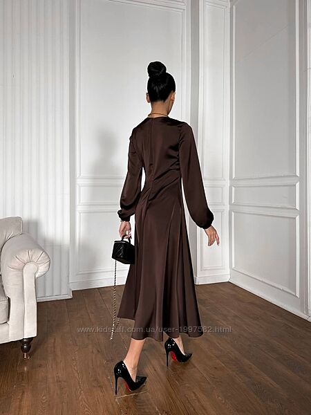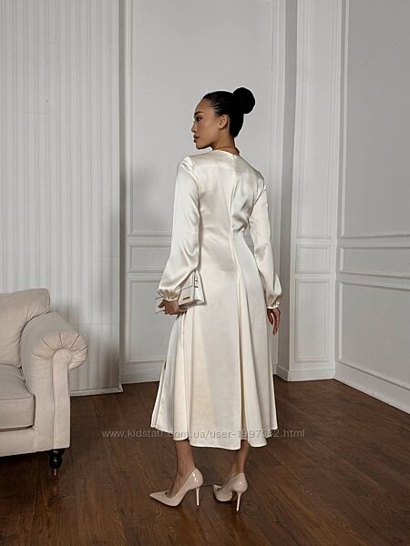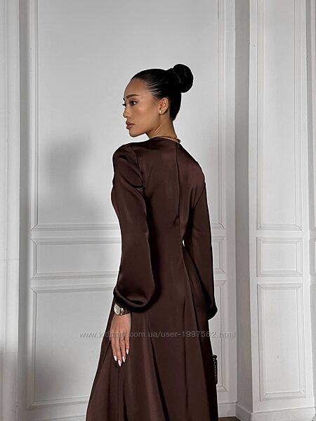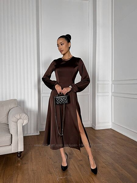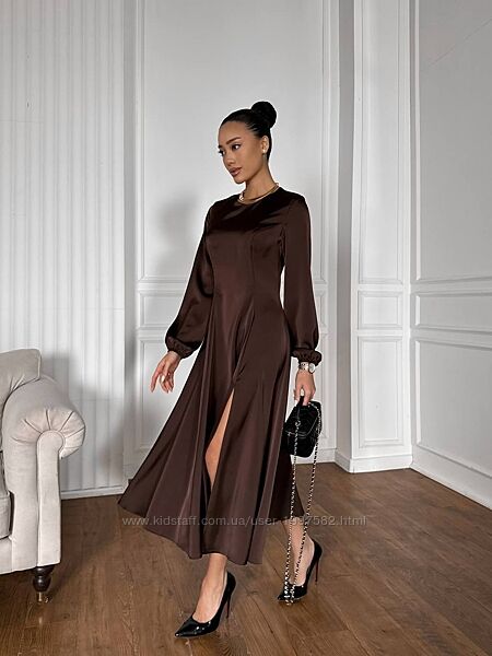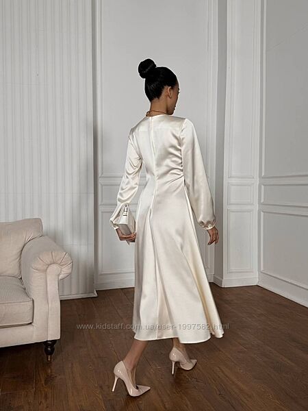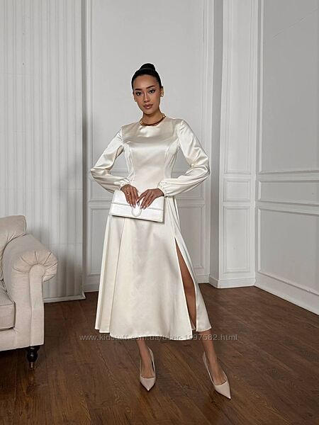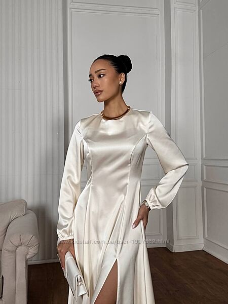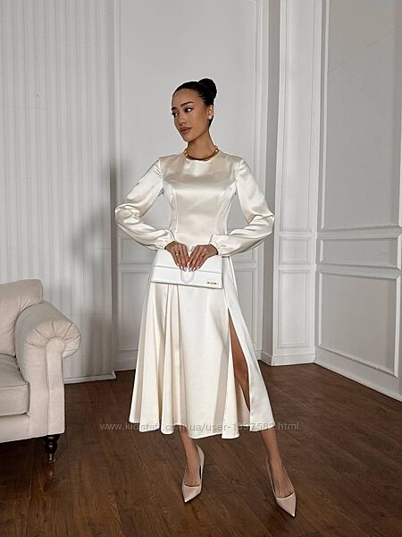 Подробное описание: Вечірня сукня шовкова міді з розрізом на нозі з довгим рукавом пишна
